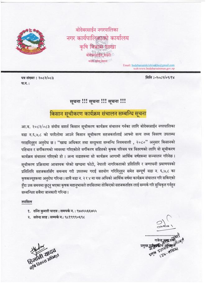 » किसान सूचिकरण कार्यक्रम सम्बन्धि सूचना |||