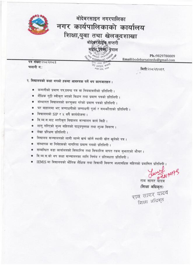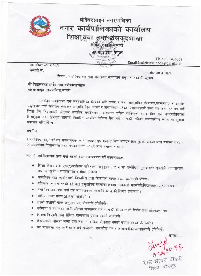 » नयाँ विधालय तथा थप कक्षा संचालन अनुमति सम्बन्धि सूचना |||