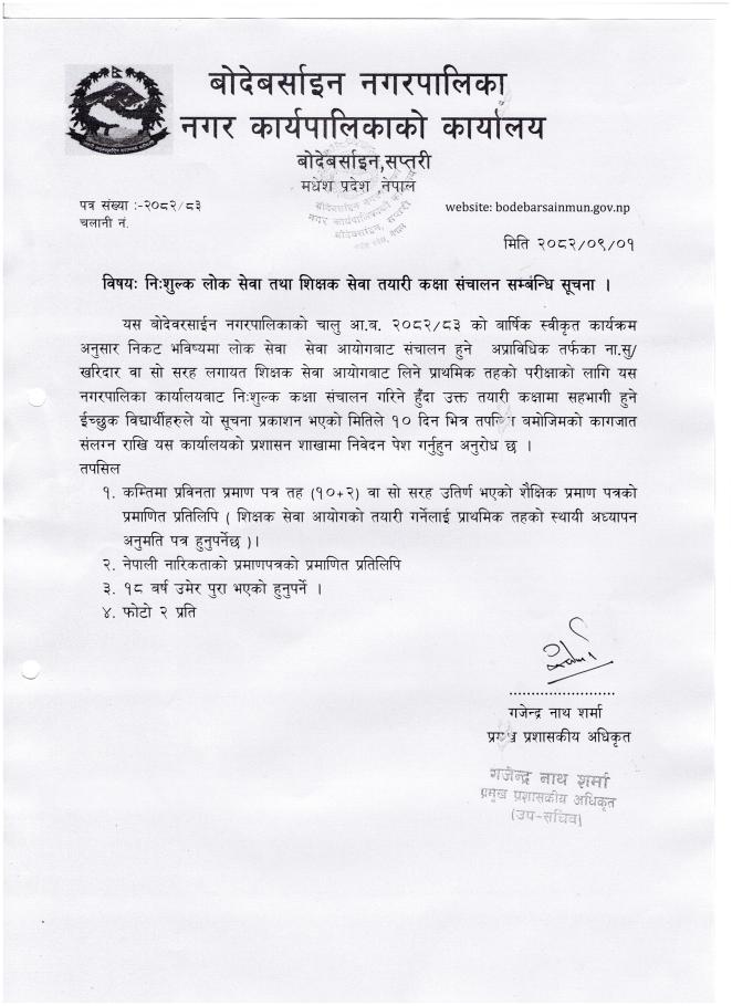 » निःशुल्क लोक सेवा तथा शिक्षा सेवा तयारी कक्षा संचालन सम्वन्धि सूचना |||