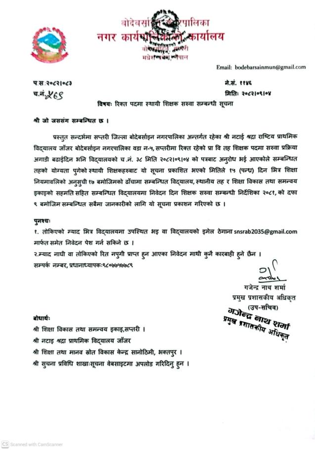 बोदेबरसाईन, सप्तरी, मधेश प्रदेश , नेपाल सरकार