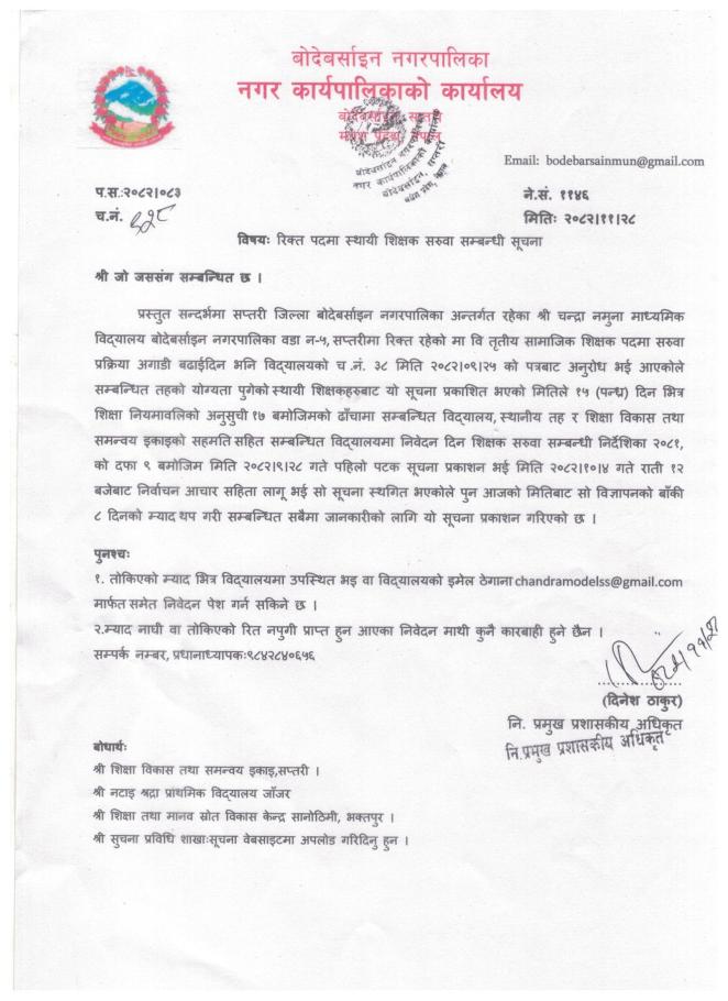 आगामी आ व २०८३/०८४ का लागि न्युनतम रोजगारिमा संगलन हुनेको लागि सूचना |||