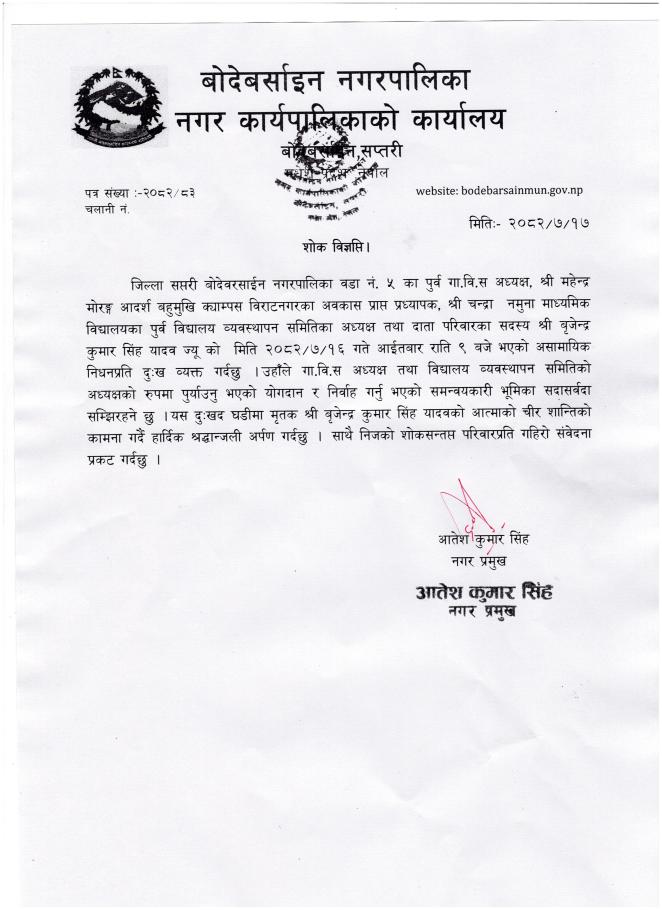 बोदेबरसाईन, सप्तरी, मधेश प्रदेश , नेपाल सरकार