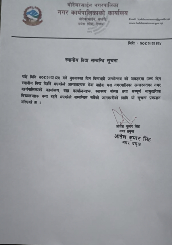 बोदेबरसाईन, सप्तरी, मधेश प्रदेश , नेपाल सरकार