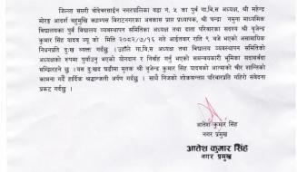 बोदेबरसाइन नगरपालिकाको पोखरी ठेक्का सम्बन्धी सुचना