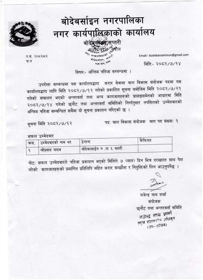बोदेबरसाईन, सप्तरी, मधेश प्रदेश , नेपाल सरकार