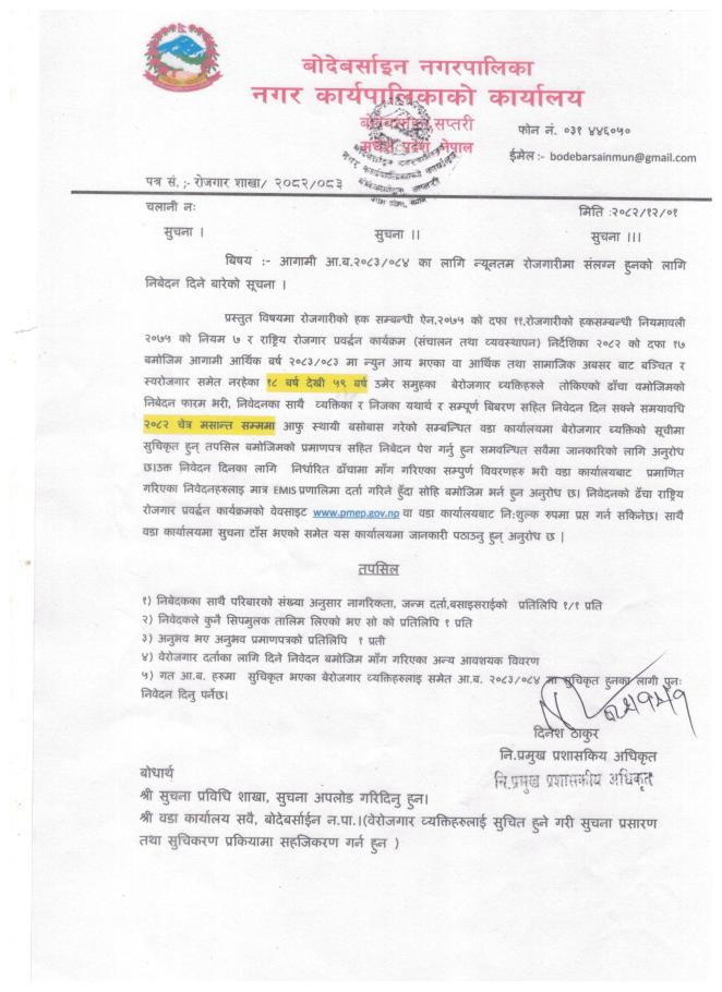 आगामी आ व २०८३/०८४ का लागि न्युनतम रोजगारिमा संगलन हुनेको लागि सूचना |||