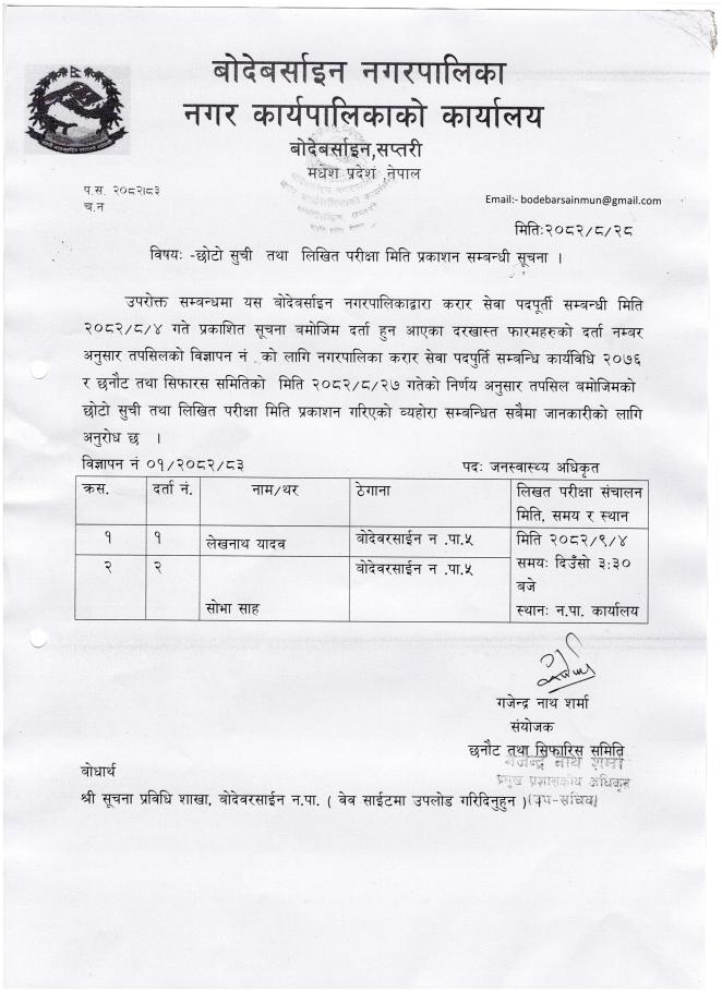 » छोटो सूची तथा लिखित परीक्षा मिति प्रकाशन सम्बन्धि सूचना |||