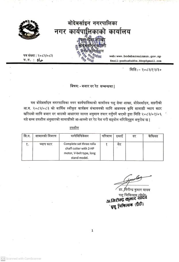 बोदेबरसाईन, सप्तरी, मधेश प्रदेश , नेपाल सरकार