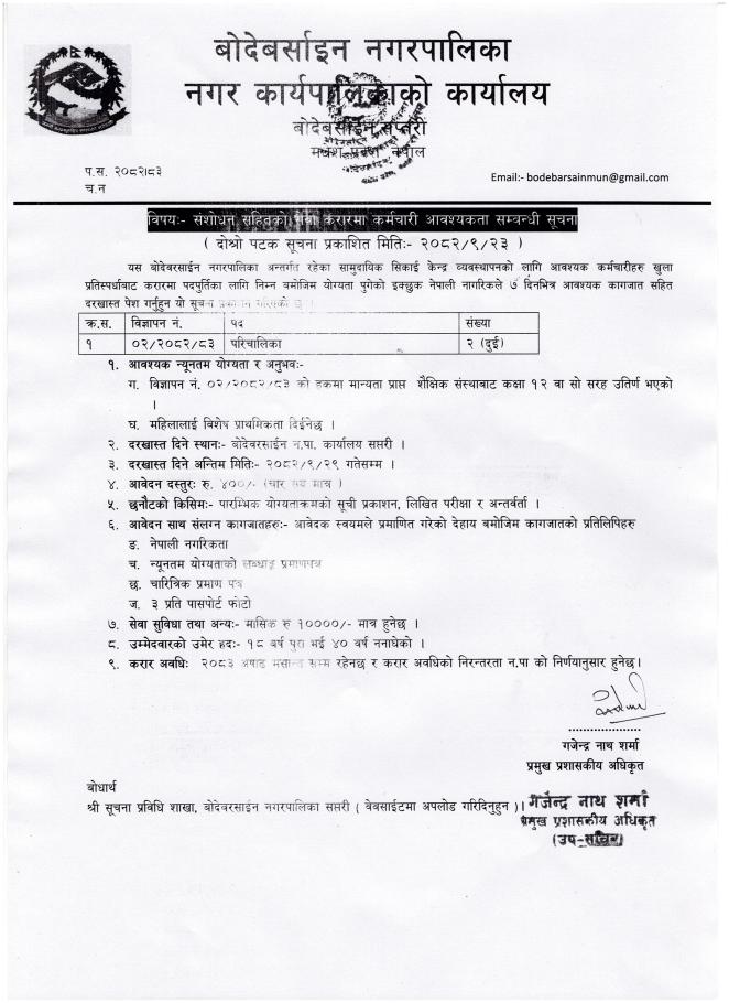 » संसोधन सहितको सेवा करारमा कर्मचारी आवश्यकता सम्बन्धि सूचना |||