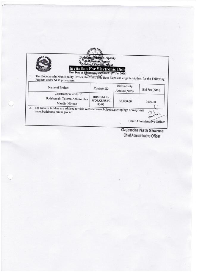 बोदेबरसाईन, सप्तरी, मधेश प्रदेश , नेपाल सरकार