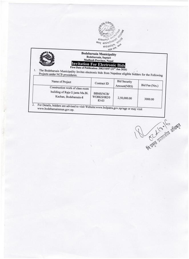 बोदेबरसाईन, सप्तरी, मधेश प्रदेश , नेपाल सरकार