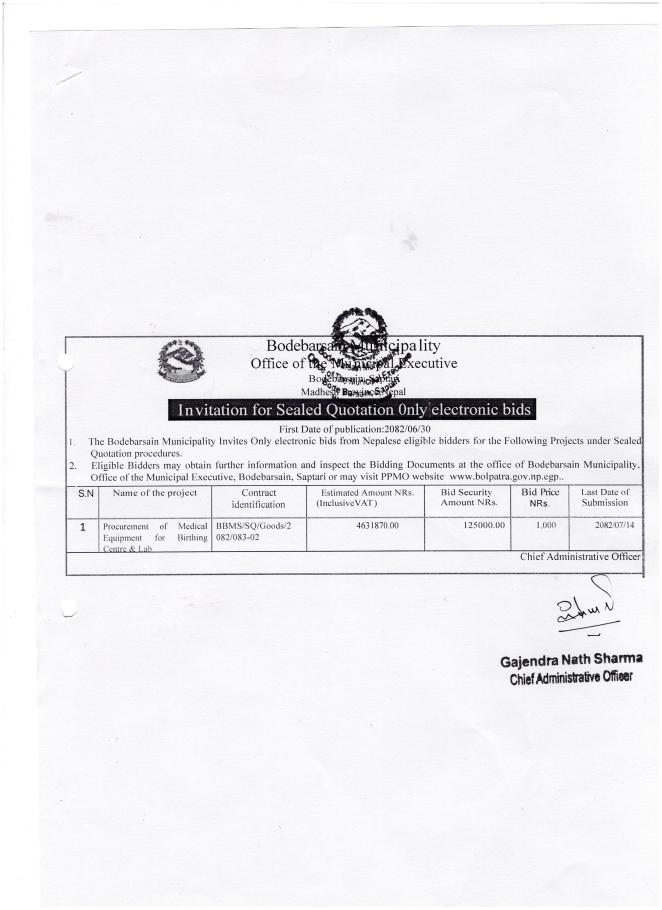 सार्वजनिक खरिद/बोलपत्र सूचना