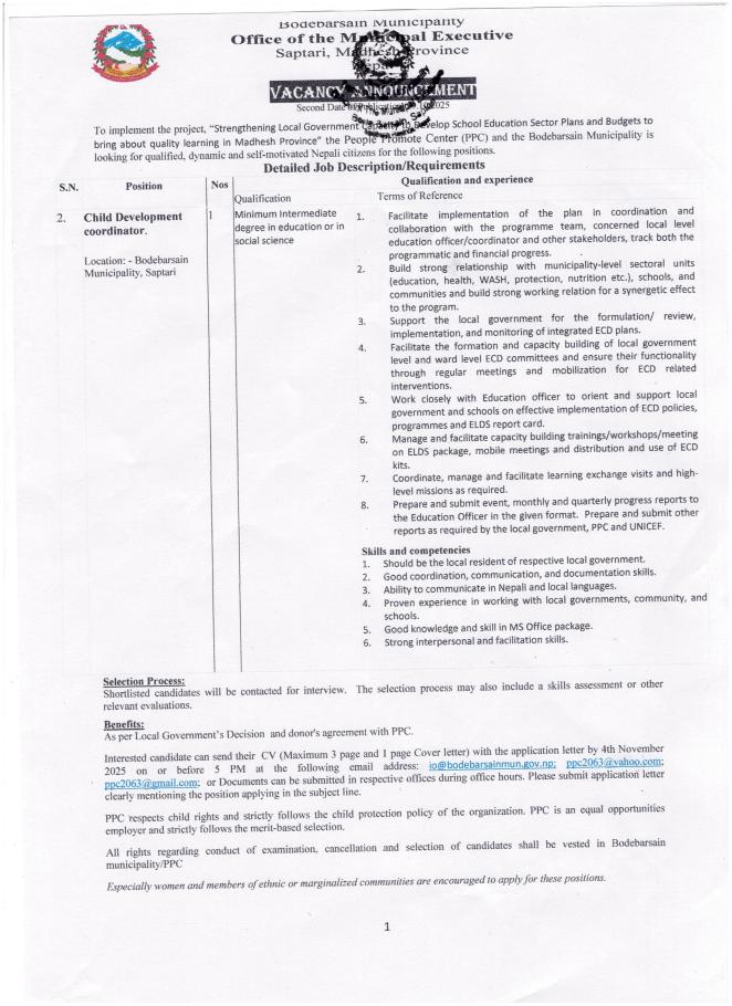 बोदेबरसाईन, सप्तरी, मधेश प्रदेश , नेपाल सरकार